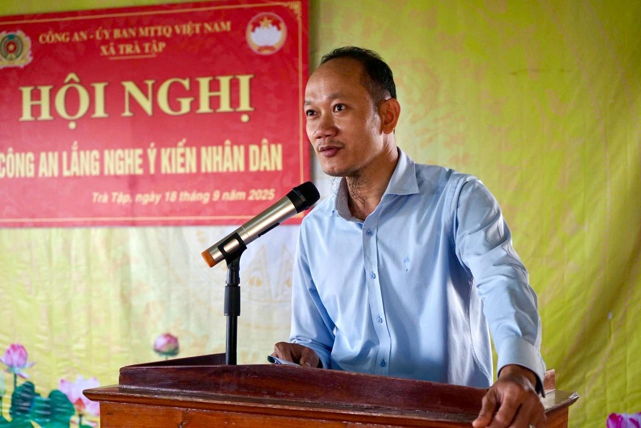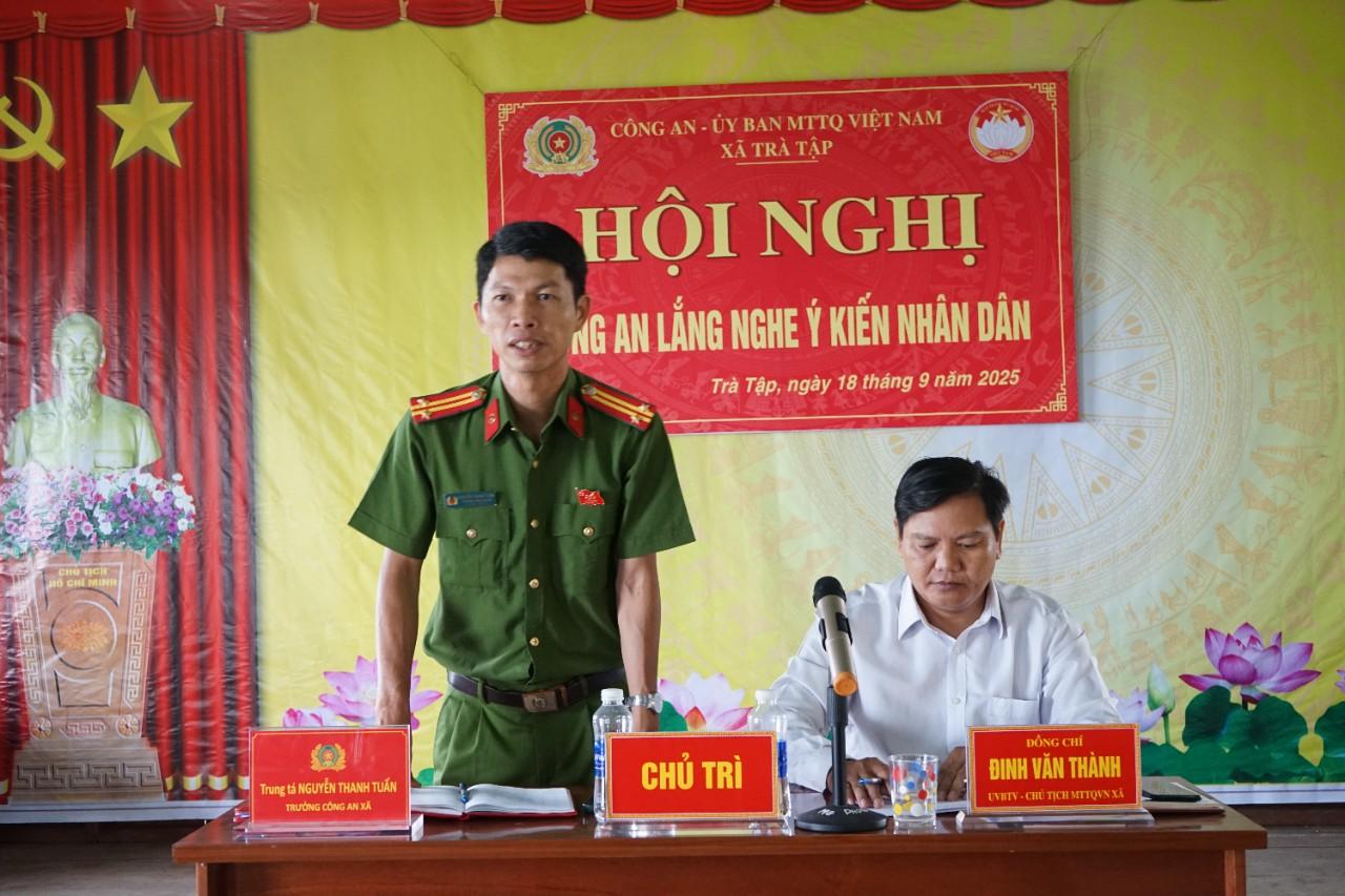 Sau khi nghe ý kiến góp ý, đại diện Công an xã Trà Tập đã giải đáp thắc mắc từng trường hợp, đồng thời đề nghị người dân tiếp tục quan tâm, phối hợp cùng Công an gìn giữ an ninh, phát huy vai trò của già làng, người uy tín trong tuyên truyền, vận động nhân dân chấp hành quy định pháp luật.