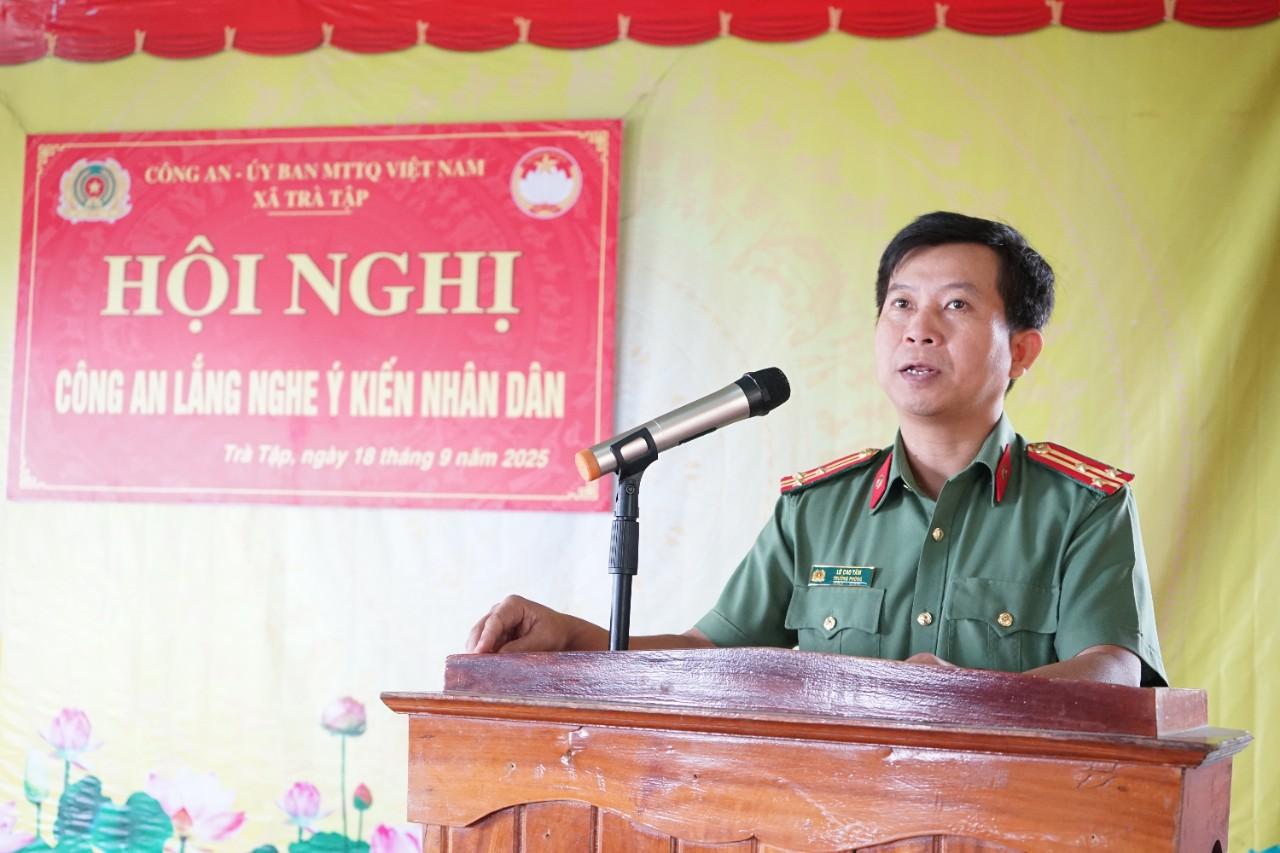 Phát biêu tại hội nghị, đồng chí Thượng tá Lê Cao Tâm – Trưởng Phòng PX03 Công an thành phố Đà Nẵng biểu dương, đánh giá cao tinh thần, trách nhiệm, kết quả Công an xã Trà Tập đạt được trong thời gian qua. Đồng chí đề nghị Công an xã Trà Tập cần làm tốt hơn nữa công tác thông tin, tuyên truyền; quán triệt tư tưởng đến cán bộ, chiến sĩ triển khai thực hiện quyết liệt công tác tấn công trấn áp tội phạm, dự báo tình hình, đảm bảo an toàn xã hội để người dân yên tâm phát triển kinh tế; tích cực, có biện pháp hoạt động dân vận, đồng hành, giúp đỡ người dân, đặc biệt là những người yếu thế...