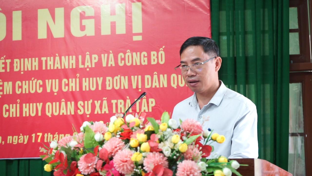 Sáng nay 17/9, Ban chỉ huy Quân sự xã Trà Tập tổ chức hội nghị công bố quyết định thành lập và bổ nhiệm chức vụ chỉ huy đơn vị dân quân thuộc Ban chỉ huy Quân sự xã. Đồng chí Đặng Văn Trà - PCT UBND xã dự chỉ đạo.